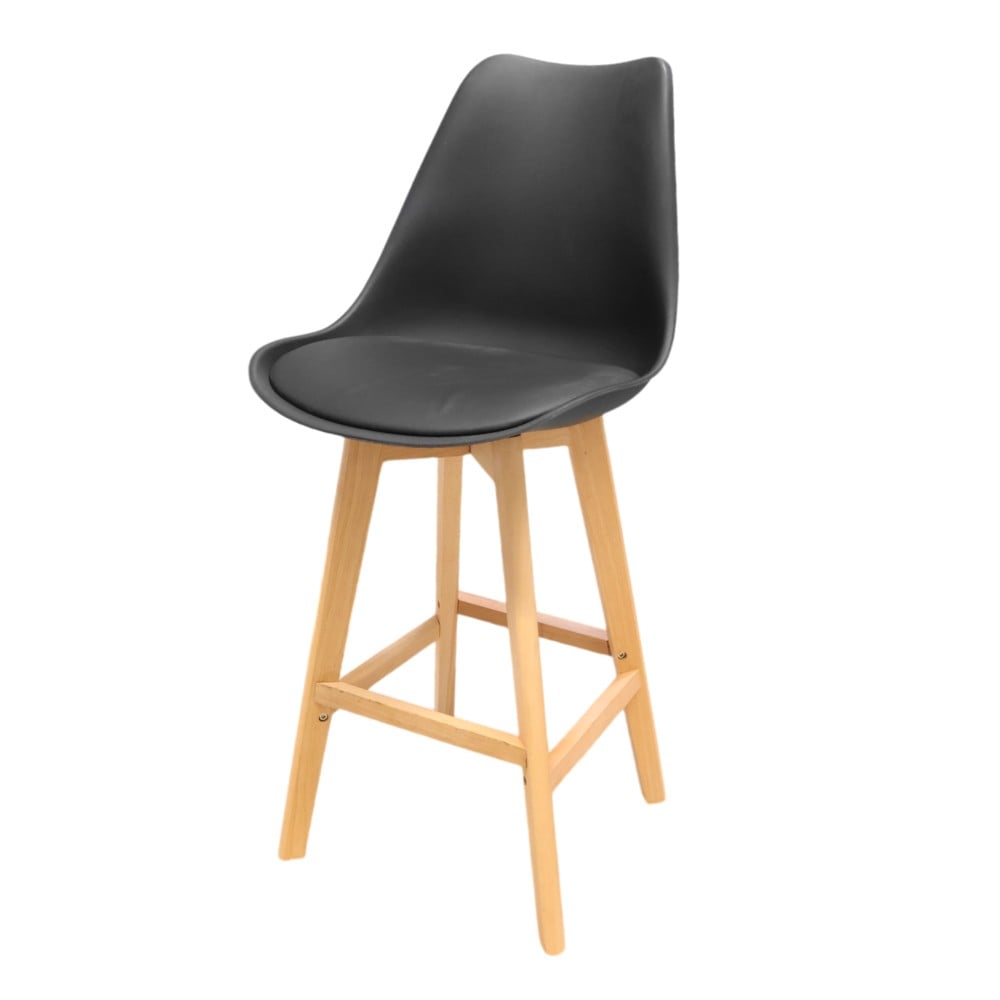 Po vlerësoni:Karrige bari, tapiceri PU, këmbë druri, e zezë, 58x48x105 cm
