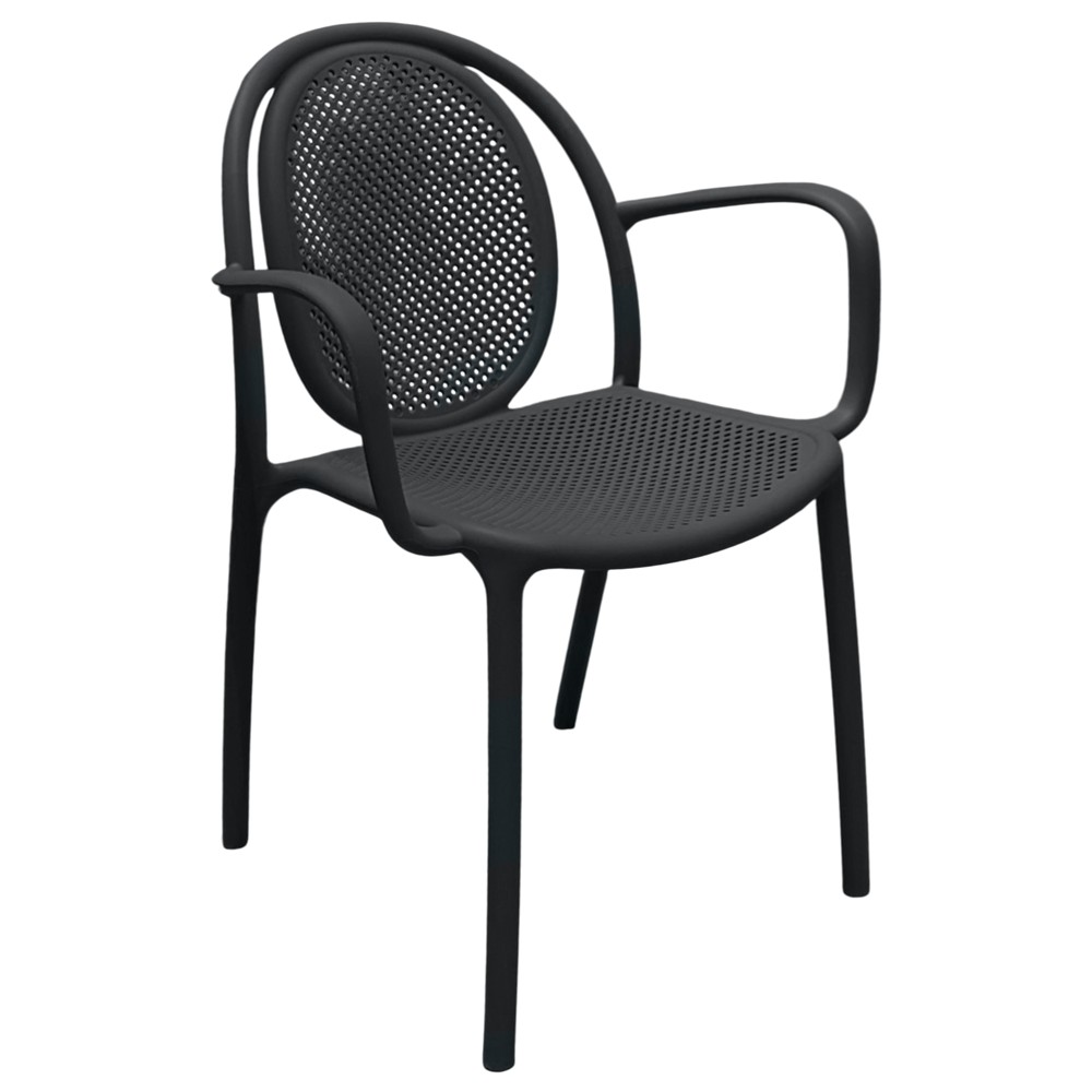 Karrigia me krahe për ambiente të jashtme, e prodhuar nga PP (polipropilen) në ngjyrë anthracit, është një opsion ideal për hapësirat jashtë, si kopshtet, ballkonet dhe verandat. Me dimensione 56.5x56.5xH80.5 cm, kjo karrige ofron komoditet dhe mbështetje të plotë për krahët, duke siguruar një eksperiencë të rehatshme. Ngjyra anthracit ofron një pamje moderne dhe të sofistikuar që mund të përshtatet me çdo stil dhe dekor të jashtëm. E bërë nga materiale të qëndrueshme dhe të rezistueshme ndaj kushteve të motit, kjo karrige është e lehtë për t'u pastruar dhe ofron përdorim afatgjatë.