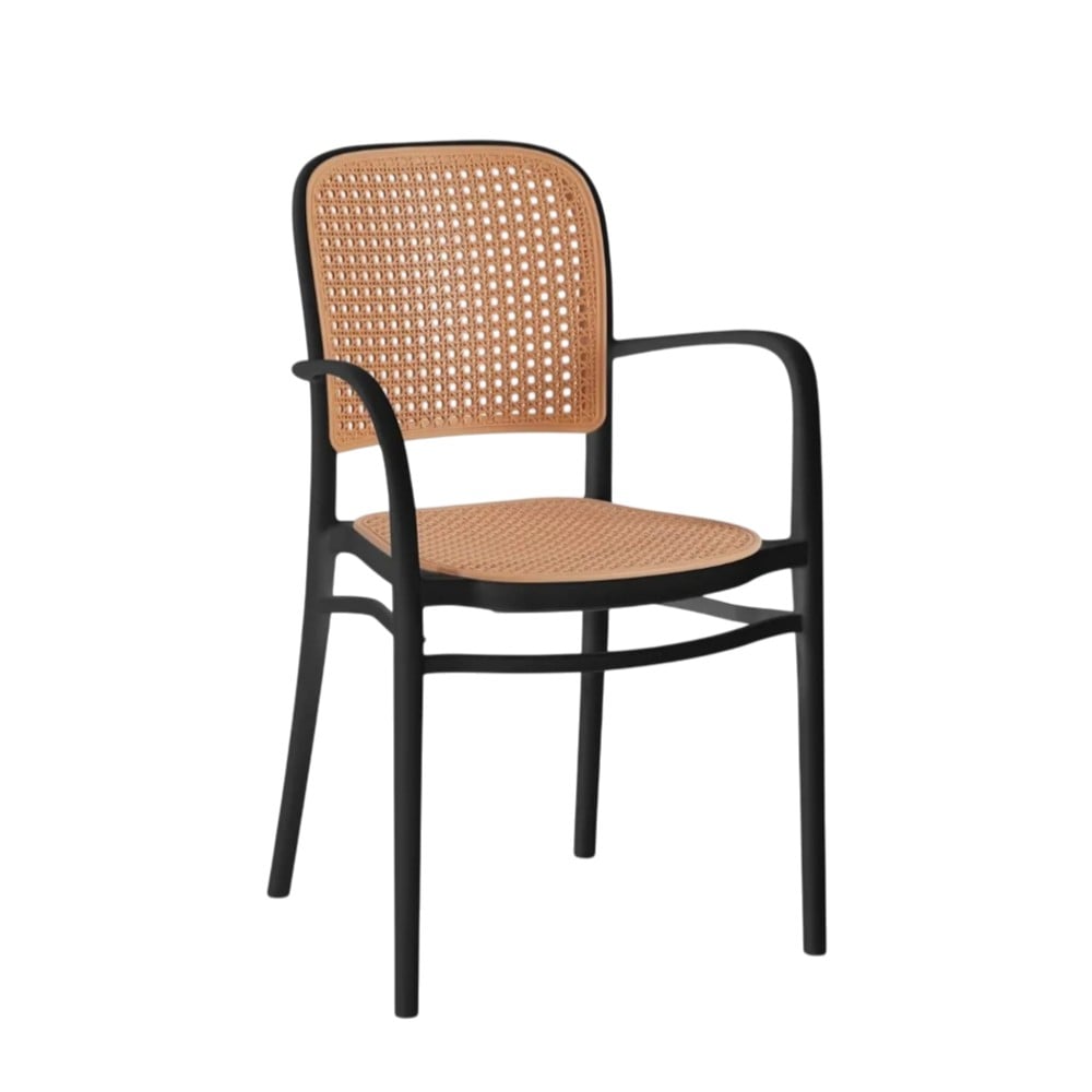 Karrigia me krahe për ambiente të jashtme, e prodhuar nga PP (polipropilen) në ngjyrë të zezë me rattan bezhe, është një zgjedhje elegante dhe praktike për hapësirat jashtë. Me dimensione 53.5x52xH81 cm, kjo karrige ofron komoditet dhe mbështetje të shkëlqyer për krahët, duke e bërë atë ideale për kopshtet, ballkonet dhe verandat. Ngjyra e zezë e trupit dhe detajet e rattanit bezhe krijojnë një kontrast të bukur dhe natyral, duke i dhënë një pamje të sofistikuar dhe moderne. E prodhuar nga materiale të qëndrueshme dhe të rezistueshme ndaj kushteve të motit, kjo karrige është gjithashtu e lehtë për t’u pastruar dhe siguron përdorim afatgjatë në ambientet e jashtme.
