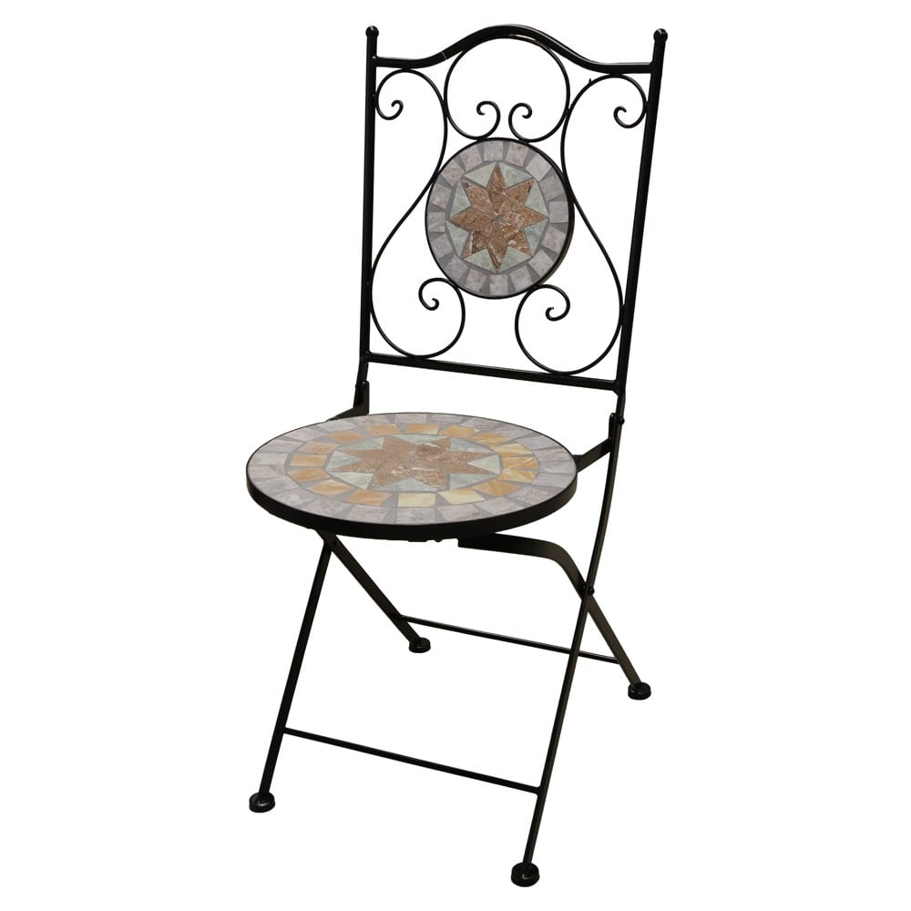 Po vlerësoni:Karrige me palosje Mosaic, metal / qeramikë, strukture e zeze, mozaik i bardhe/bezhe, 38x46xH90 cm