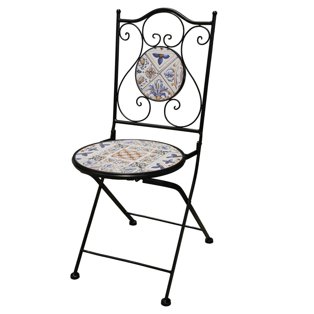 Po vlerësoni:Karrige me palosje Mosaic, metal / qeramikë, strukture e zeze, mozaik i bardhe/blu, 38x46xH90 cm