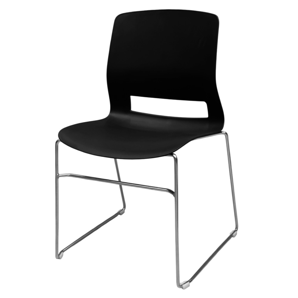 Karrige statike, ulëse dhe mbështetëse plastike, këmbë metalike e kromuar, e zezë
