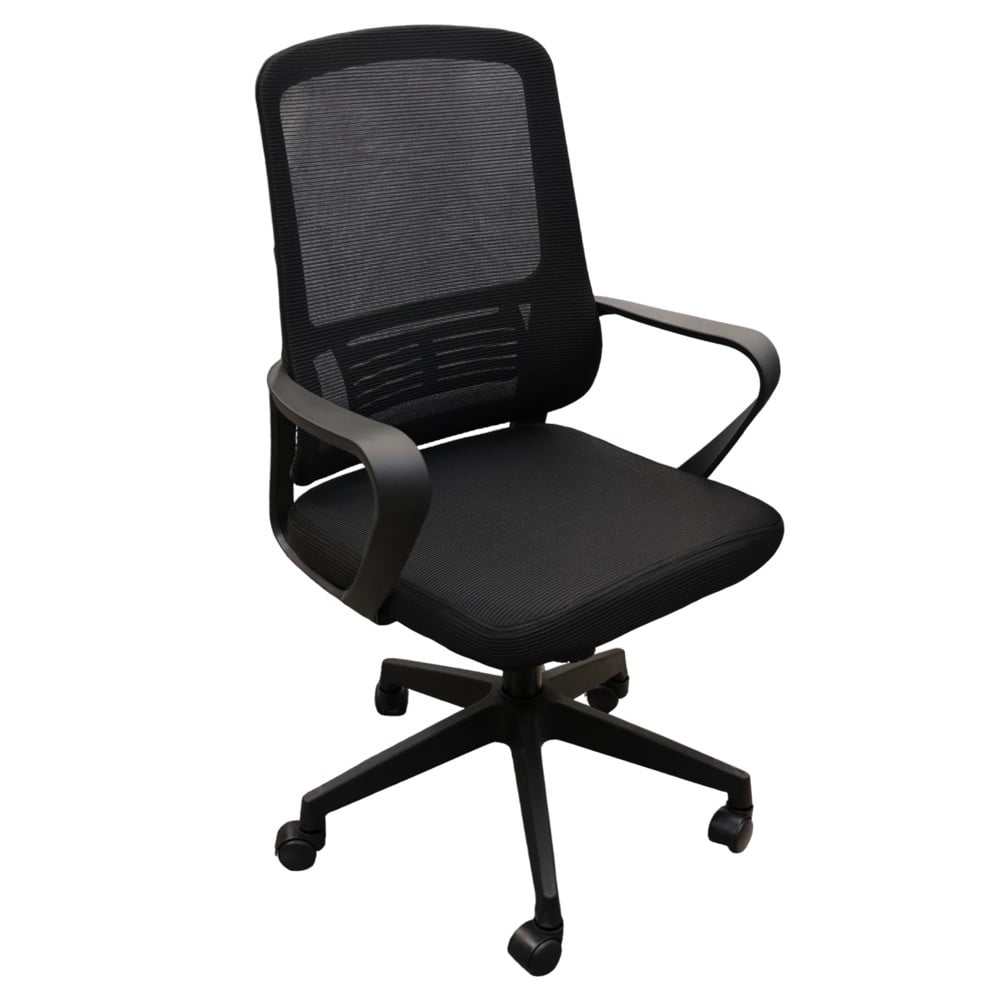 Karrige zyre, mbështetëse rrjetëzuar, ulëse e rrjetëzuar, krahë PP, bazament plastik, rrota najloni, e zezë, 57x53xH99-109 cm
