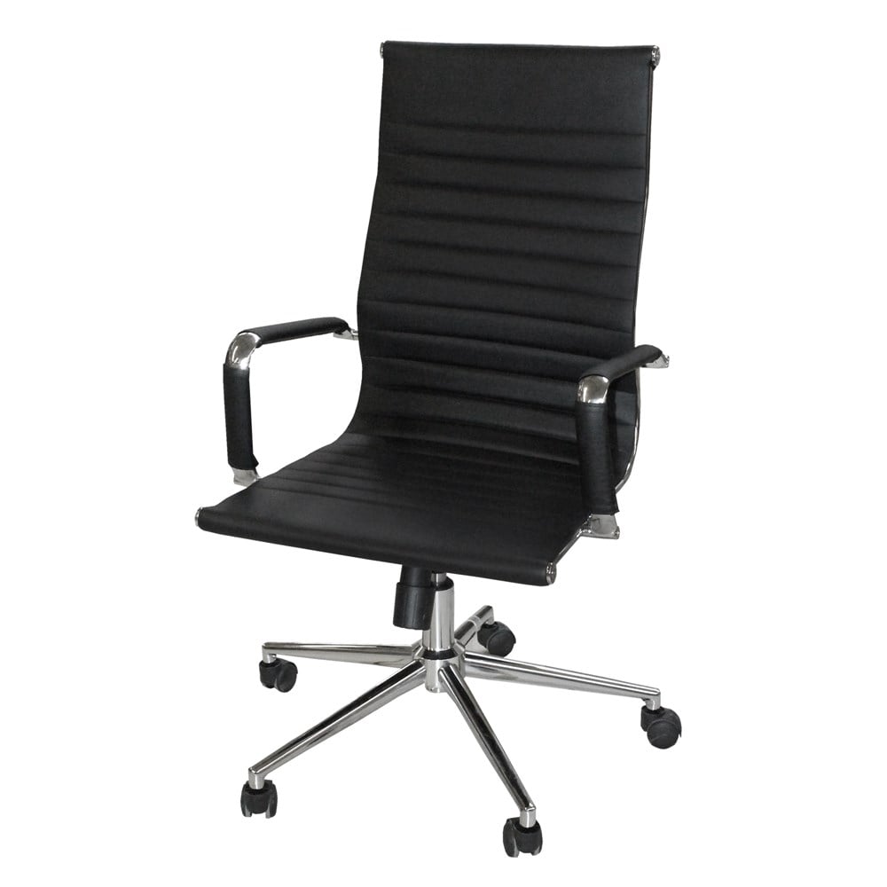 Kjo karrige luksoze me lëkurë të zezë ofron rehati maksimale dhe çmim të arsyeshëm. Lartësia e regjistrueshme dhe bazamenti i rëndë me pesë rrota e bëjnë këtë karrige të pa krahasueshme. Kjo karrige është zgjedhja më e mirë për komoditet në hapësirën tuaj.