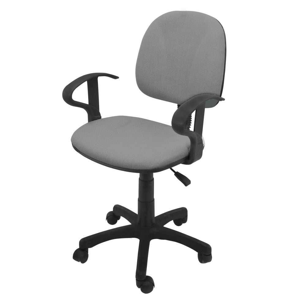 Karrige zyre me rrota, me krahë, strukturë plastike, tapiceri tekstili, gri, 45x47xH73-85 cm