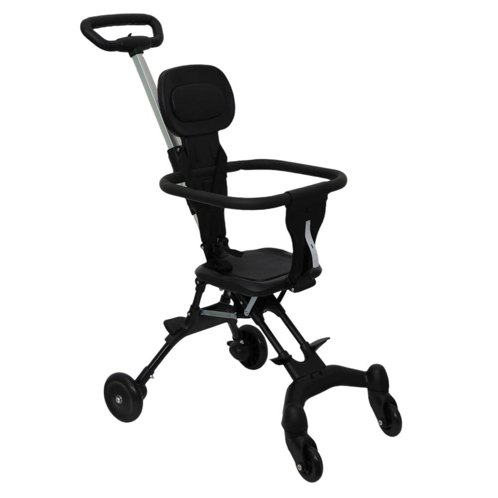 Karroca për fëmijë, e bërë nga alumin dhe plastike, ka një dizajn elegant në ngjyrë të zezë. E lehtë dhe e qëndrueshme, ajo ofron komoditet dhe siguri gjatë përdorimit. Me funksionalitet të shkëlqyer, është e pajisur me elemente të përshtatshme për nevojat e fëmijëve dhe prindërve.