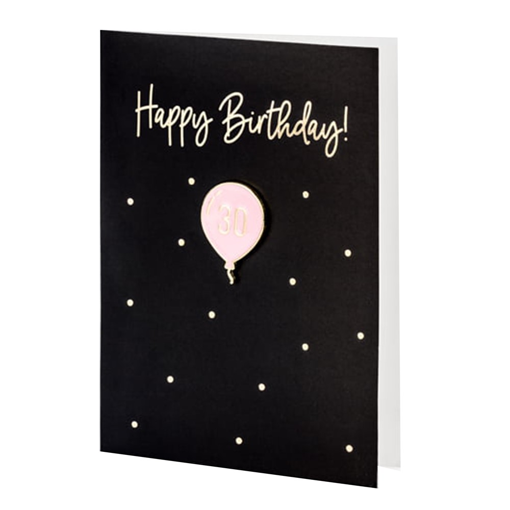 Kartolinë me pineskë dekoruese, Happy Birthday Balloon 30, Party Deco, letër dhe metal, 10.5x14.8 cm, e zezë dhe rozë, 1 copë