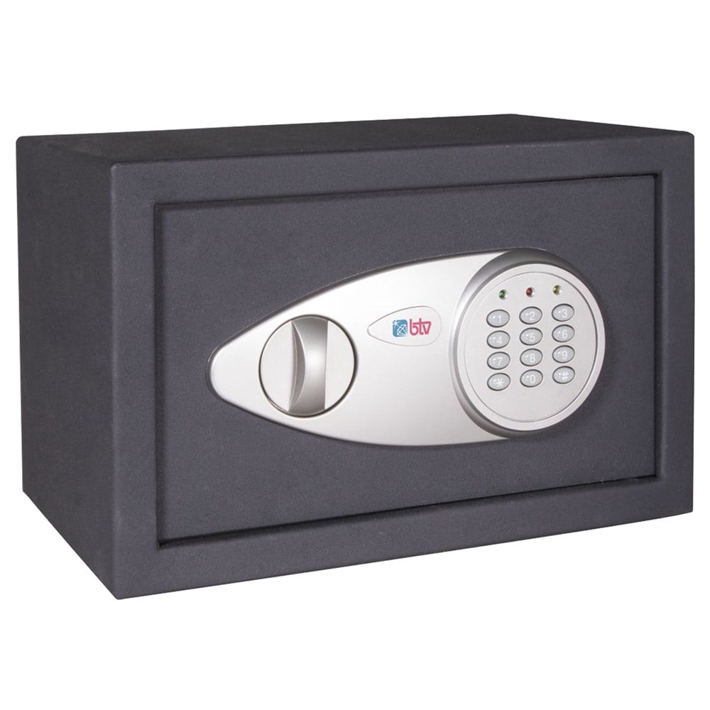 Kasaforta ALPHA BTV per shtepi edhe zyra, e sigurt dhe elegante , me trashesi dere 4mm dhe trashesia ne trupin e kasafortes 1.5mm. Ngjyra e zeze me permasa 200 x 310 x 200mm , menyra e hapjes me celes dhe elektronike , nje kod emergjence 8-shifror. Pesha e kasafortes 6 kg dhe kapaciteti i brendeshem 8 Lt.