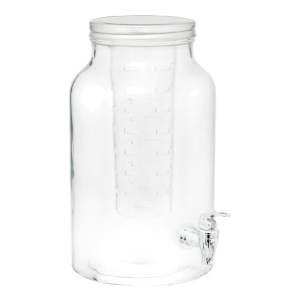 Ky kavanoz dispenser me rubinet, i bërë nga xham transparent, është një zgjidhje elegante dhe praktike për të servirur pije të ndryshme në festa, ose thjesht për përdorim të përditshëm në shtëpi. Dizajni i tij i qartë ju lejon të shihni lehtësisht përmbajtjen, ndërsa rubineti i integruar siguron servirje të lehtë dhe pa derdhje. Xhami është i lehtë për t'u pastruar dhe rezistent ndaj njollave dhe erërave. Ideale për servirjen e lëngjeve, limonadave, çajrave të ftohta, punch-eve dhe pijeve të tjera. Ky kavanoz dispenser me rubinet është një zgjedhje e shkëlqyer për të servirur pije me stil dhe praktikitet, duke shtuar një prekje elegance në çdo rast.