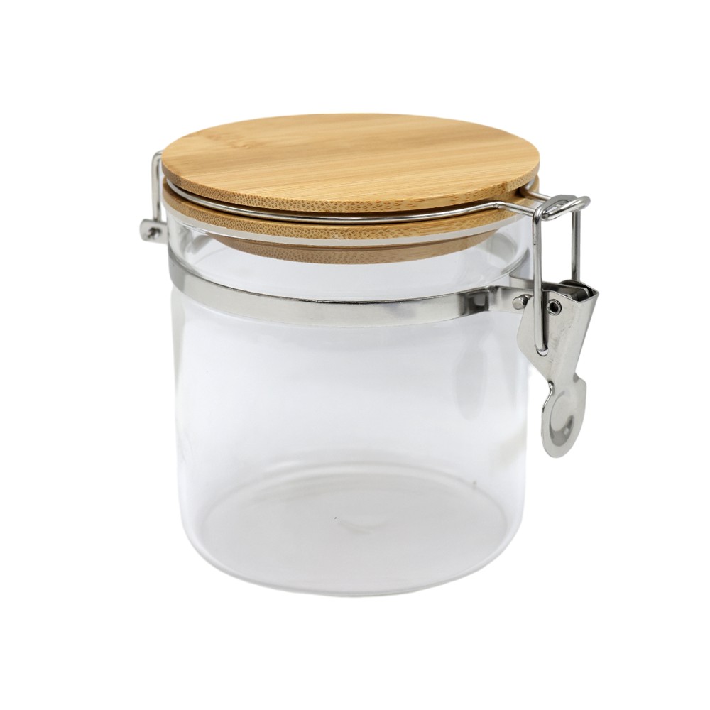 Hermetic jar with bamboo lid, glass/bamboo, transparent, H10.5 cm / 600 ml
