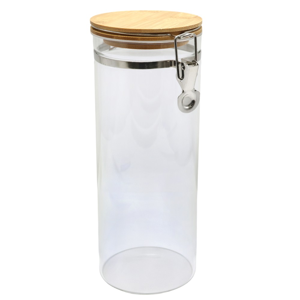 Dizajni i pastër dhe i thjeshtë bën kavanozin të përshtatshëm për çdo ambient në kuzhinë ose në depo. Kapaku i bambut jep një prekje të natyrshme dhe të bukur dizajnit të kavanozit, duke e bërë atë një pjesë tërheqëse të dekorit të kuzhinës suaj.