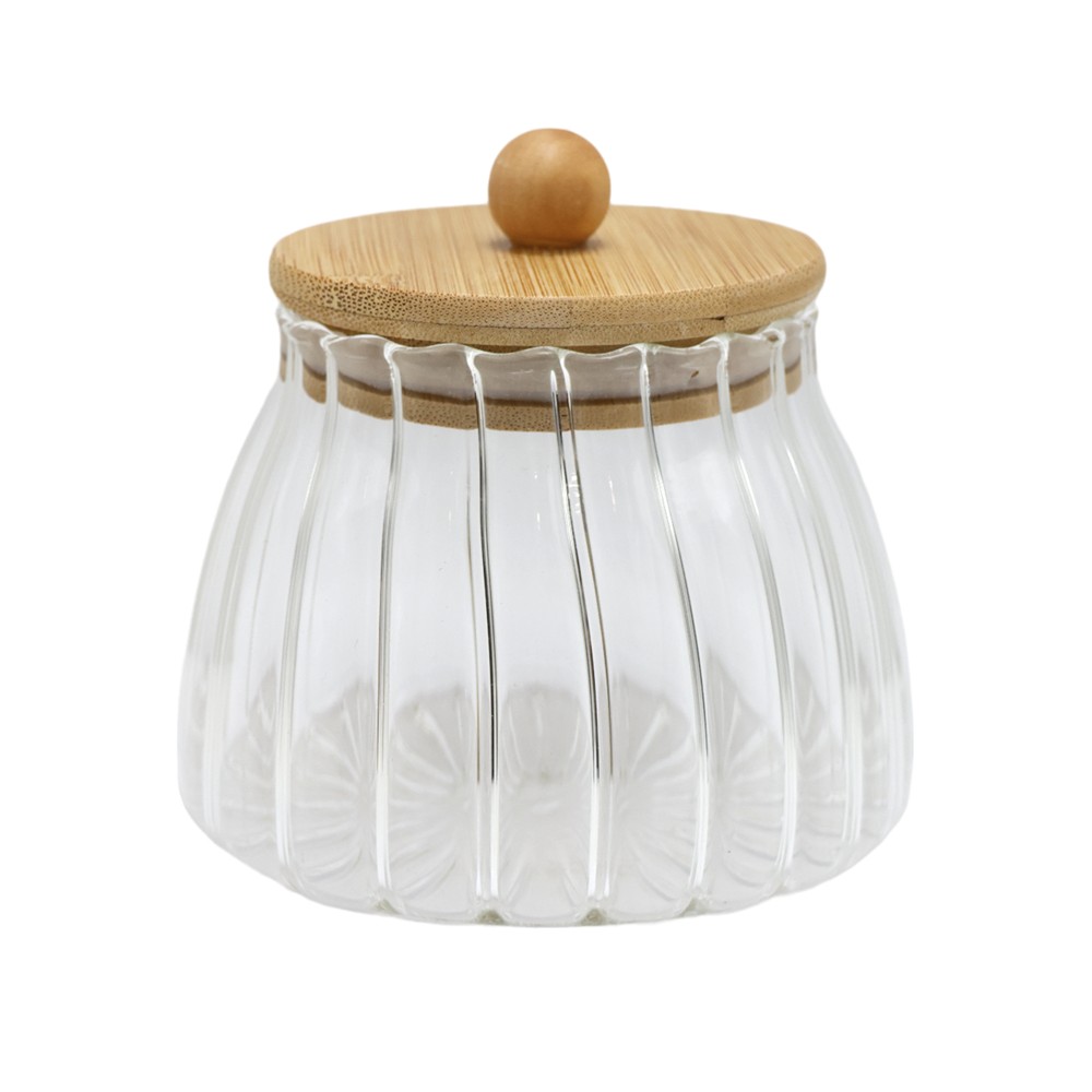 Kavanozi i konservimit me kapak bambu është një zgjedhje e shkëlqyer për të ruajtur ushqimet e freskëta në një mënyrë të elegante dhe të natyrshme. Ky kavanoz kombinon trupin prej qelqi transparent me një kapak të bambut, krijuar për të siguruar një pamje tërheqëse dhe një mjet funksional për të ruajtur ushqimet.