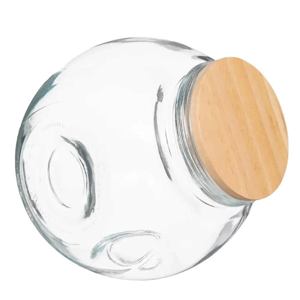 Kavanoz me kapak, qelq/bambu, transparente, Dia.8xH12.5 cm / 650 cc