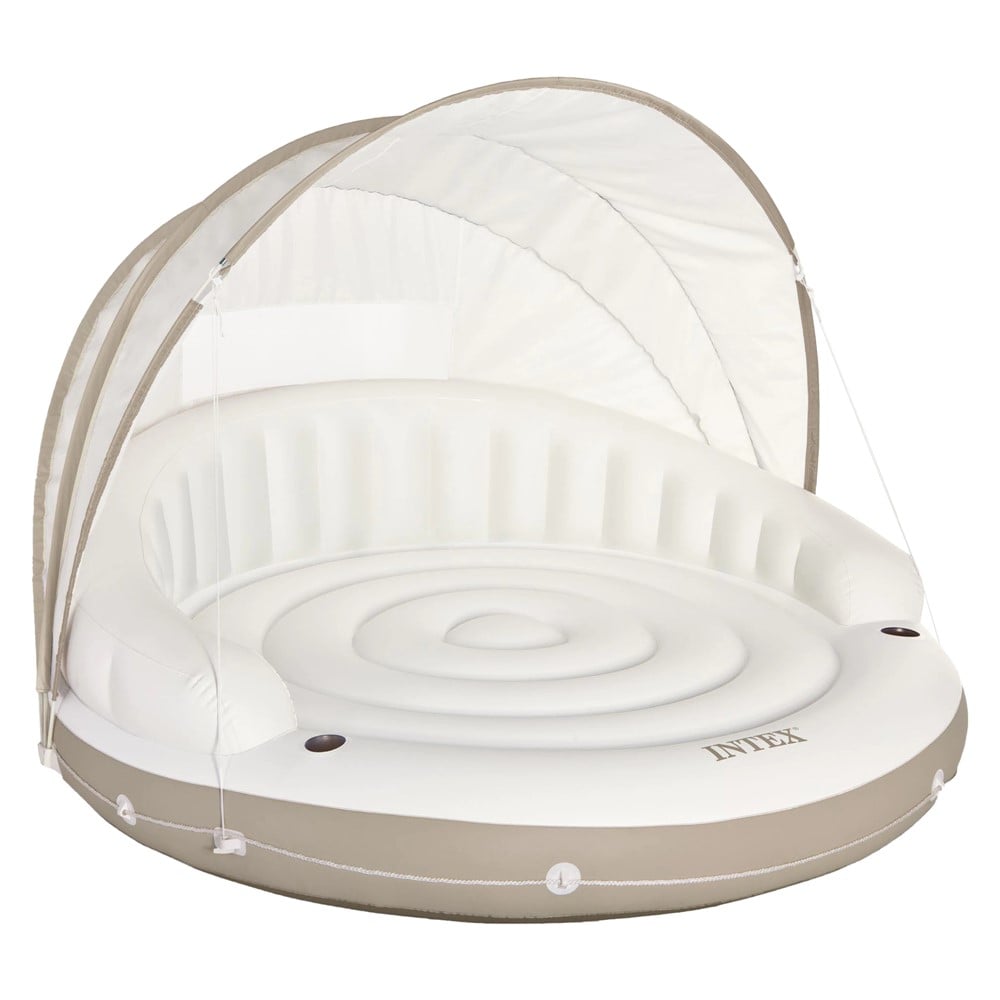 Lounge INTEX Caribbean, elementi thelbësor për të pushuar gjatë gjithë verës. Falë maskës së tij të ndashme të diellit, ky dyshek i madh i rrumbullakët i fryrë është i përsosur për t'u çlodhur ndërsa mbrohet nga dielli. Hyni në këtë flluskë ëmbëlsie vetëm ose me të tjerët!