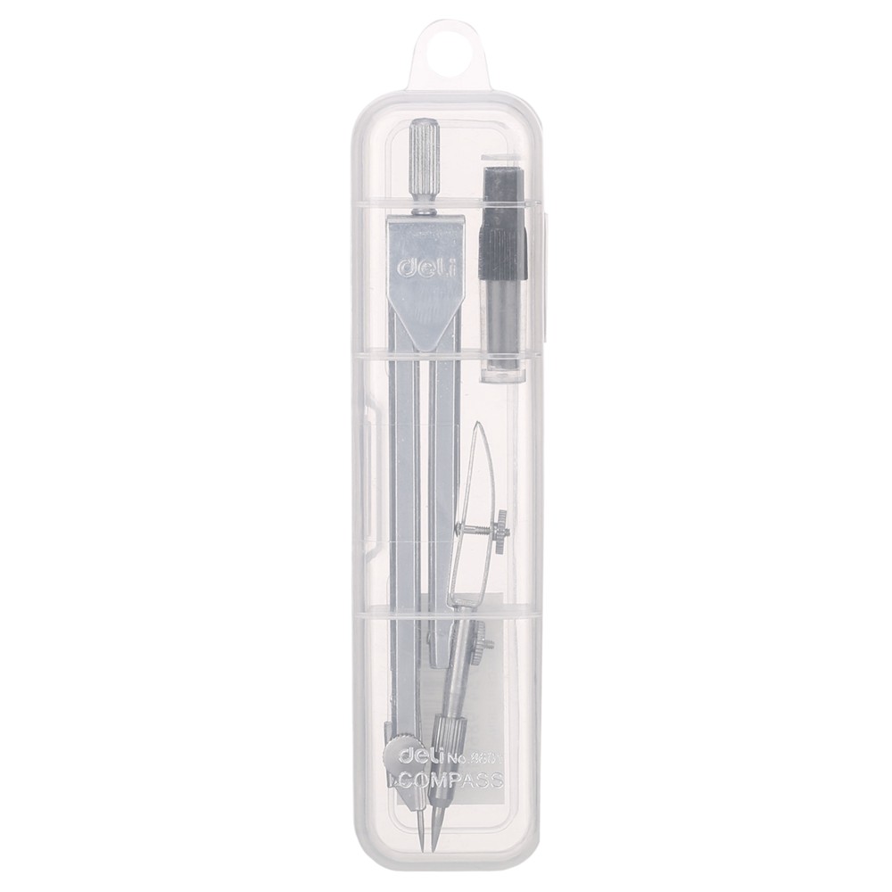 Kompast Deli, plastike, ngjyra mikse. Ky kompast është i qëndrueshëm dhe i dizajnuar për të ofruar saktesi, duke e bërë të përshtatshëm për përdorim të përditshëm në shkollë dhe në zyrë.