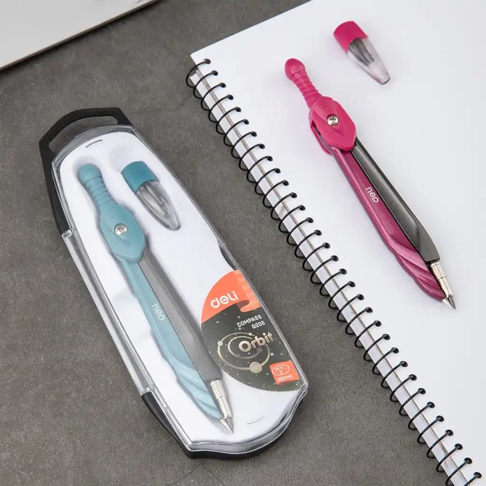 Kompast me laps Deli, metalike, ngjyra mikse. Ky kompast është i qëndrueshëm dhe i dizajnuar për të ofruar saktesi, duke e bërë të përshtatshëm për përdorim të përditshëm në shkollë dhe në zyrë.