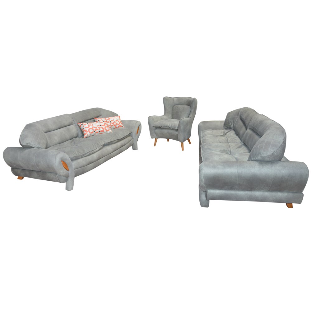Dizenjo e divanit PARIS me tapiceri tekstili e bën këtë divan një pjesë qëndrore të mobiljeve për çdo shtëpi elegante. Një pjesë tërheqëse, divan i bollshëm me një dizenjo elegante dhe të rehatshme bërë me pëlhurë të një cilësie të lartë. Ky divan është ndërtuar me sfungjer të një densiteti të lartë për rehati të vazhdueshme dhe siguron jetëgjatësi për shumë vite në vazhdim. I bukur dhe me stil, divani do të jetë një vend i qetë për ju dhe mysafirët tuaj për t'u ulur dhe relaksuar. Pamja bashkëkohore e bën divanin PARIS një shtesë të shkëlqyer për çdo shtëpi. Me pamjen mikpritëse dhe komode, ky divan do të jetë element kryesor dhe i përkryer për dhomën tuaj të ndenjes. Seti përfshin: Divani 3-vendësh: 230x105xH80 cm; Kolltuku: 80x80xH95 cm