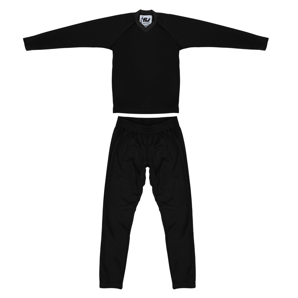 Kostum sportiv për fëmijë ideal gjatë aktiviteteve sportive dhe gjatë kohës së lirë. të ndërtuar nga material me cilësi të lartë për të siguruar rehati dhe komoditet për fëmijët. Vjen në një dizajn unik të zezë, i përshtatshëm për fëmijët deri në moshën 14 vjeçare.