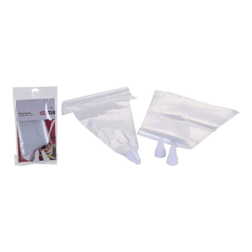 Set për dekorimin e kekeve, ëmbëlsirave dhe tortave.-.Thjesht pritet maja dhe futet në qese.Seti përfshin 3 maja të ndryshme, maja (të ripërdorshme) dhe 10 qese.