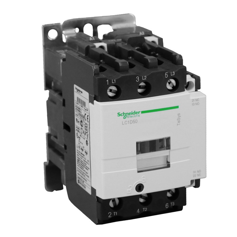 Kontaktorët janë celësa elektrikë të cilët përdoren për të kycur dhe shkycur pajisje të ndryshme nga rrjeti.Ky është një kontaktor I përdorshëm në tension alternativ(AC), bobina e tij është 220V (por mund të ndryshohet në varësi të specifikave të ndryshme të sistemit),ka tre pole me fuqi maksimale 33kW dhe me rrymë 50A.