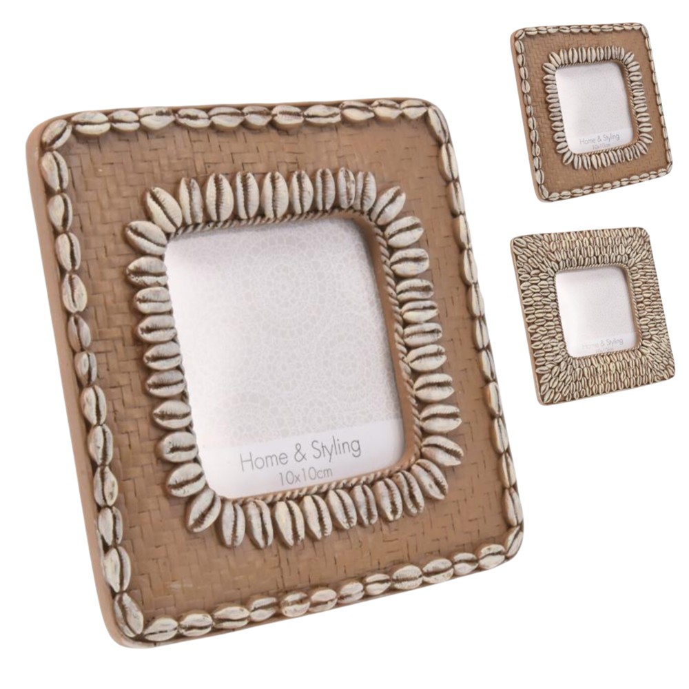 Një kornizë unike e cila do të shtojë një prekje finale në arredimet tuja që do të mhanisë këdo. Me materiale natyrore si guackat të cilat sjellin freskinë e plazhit në çdo kohë. Korniza e saj është e përbërë nga polirezina dhe ka një ngjyrë teë këndshme të nuancave bezhë dhe kafe. Një objekt dekorues dhe funksional i cili është një detaj ekstra për kompozimet që do të realizoni. Fotot tuaja do të duken edhe më bukur falë kësaj kornize e cila ka elementë të veçantë në formën e saj. Guackat janë një detaj që bëjnë difernecën dhe që do të kthehet në pikën kyçe të dekorimeve tuaja.