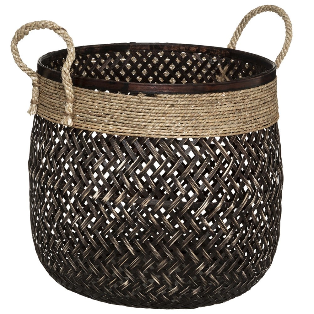 Po vlerësoni:Kosh magazinimi, L, bambu/jutë, kafe/zezë, Ø37 xH34 cm