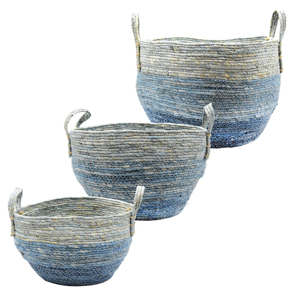 Kosh magazinimi, set 3 copë, kashtë, gri/blu, 1-Ø30 xH22 cm; 1-Ø35 xH25 cm; 1-Ø37 xH30 cm