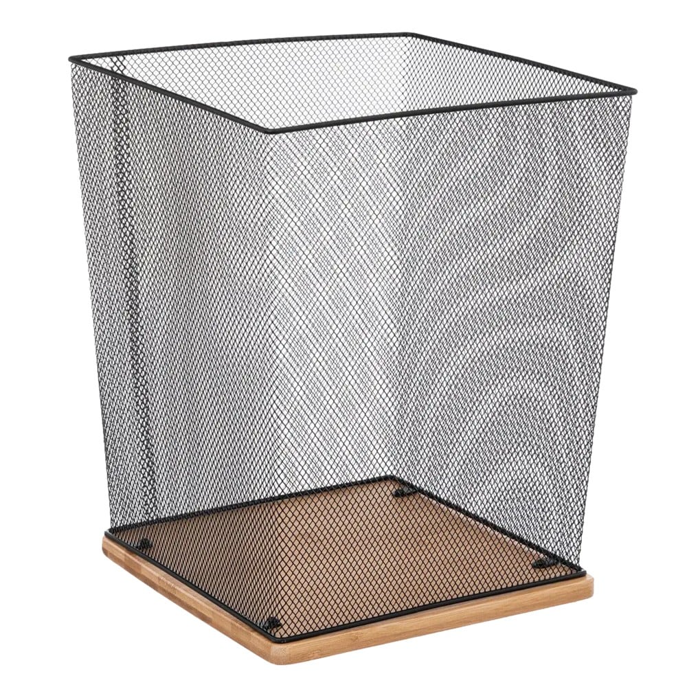 Kosh metalik katror, me rrjete metalike dhe pjesen fundore dru bambuje, elegant që plotëson dekorin e çdo zyre. Fantastik për plehrat dhe çdo gjë tjetër që ju dëshironi për të hedhur. Nuk kërkohet montim.
