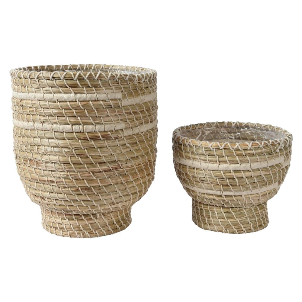 Kosh për lule, set 2 copë, kashtë, Natyrale/ E bardhë