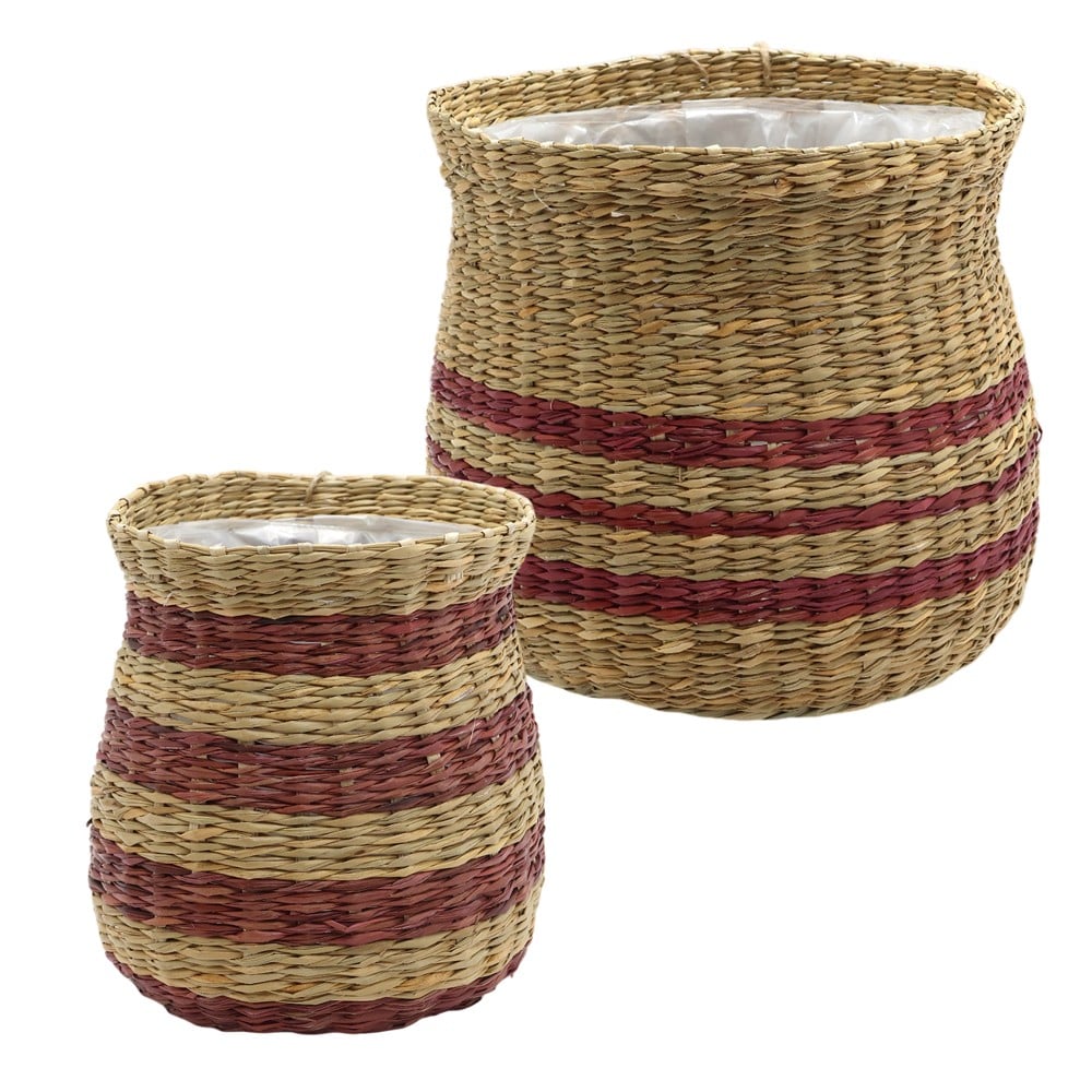 Po vlerësoni:Kosh për lule, set 2 copë, kashtë, Natyrale/Kafe
