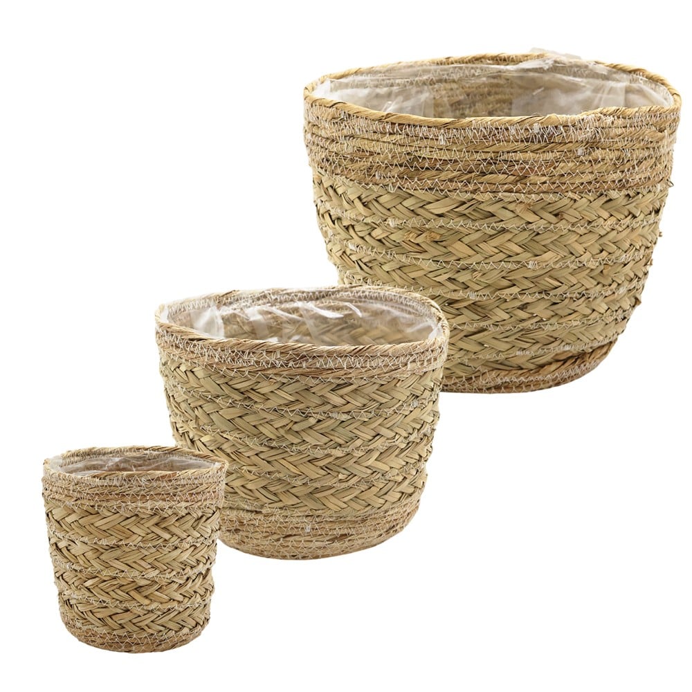 Kosh për lule, set 3 copë, kashtë, Natyrale