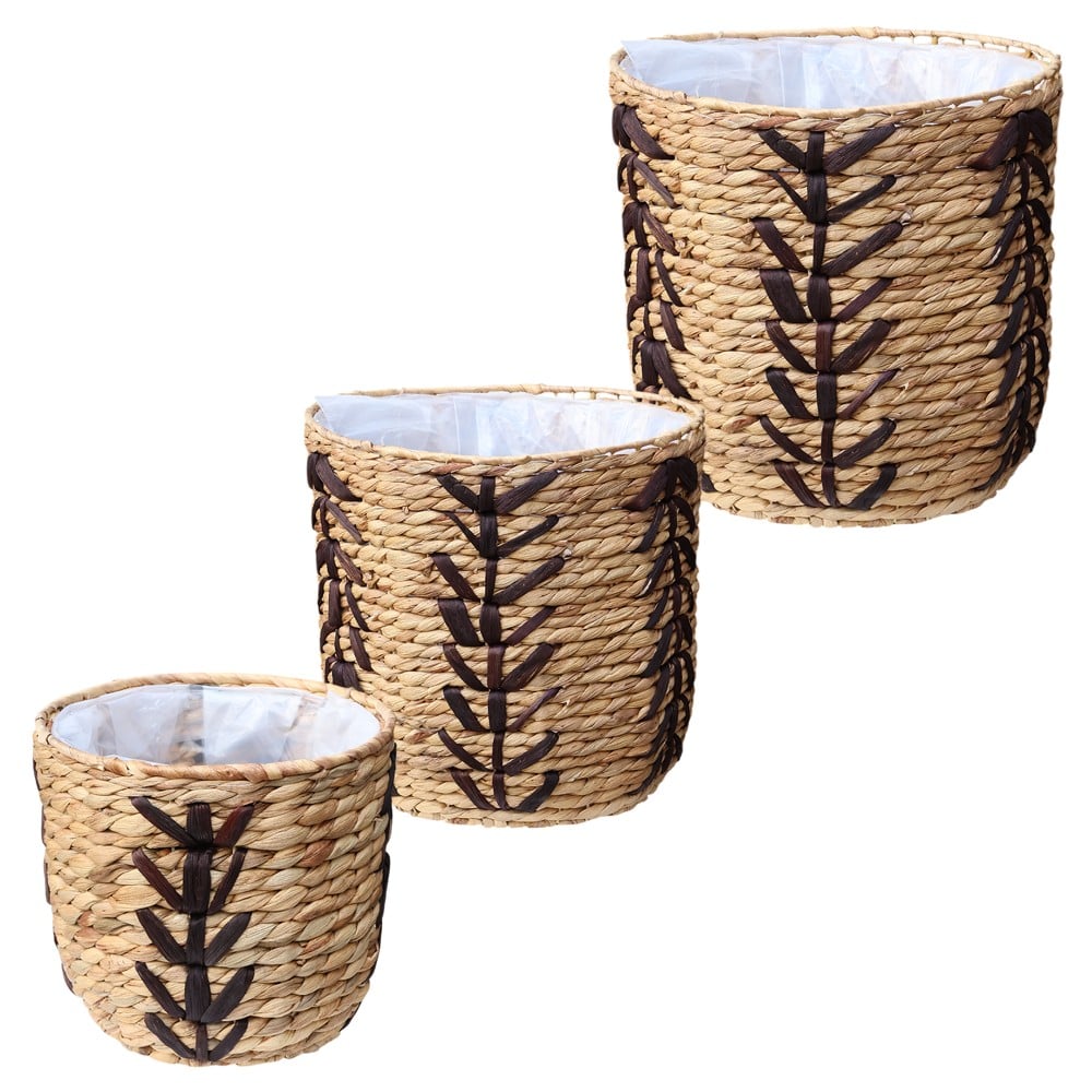 Kosh për lule, set 3 copë, kashtë, Natyrale