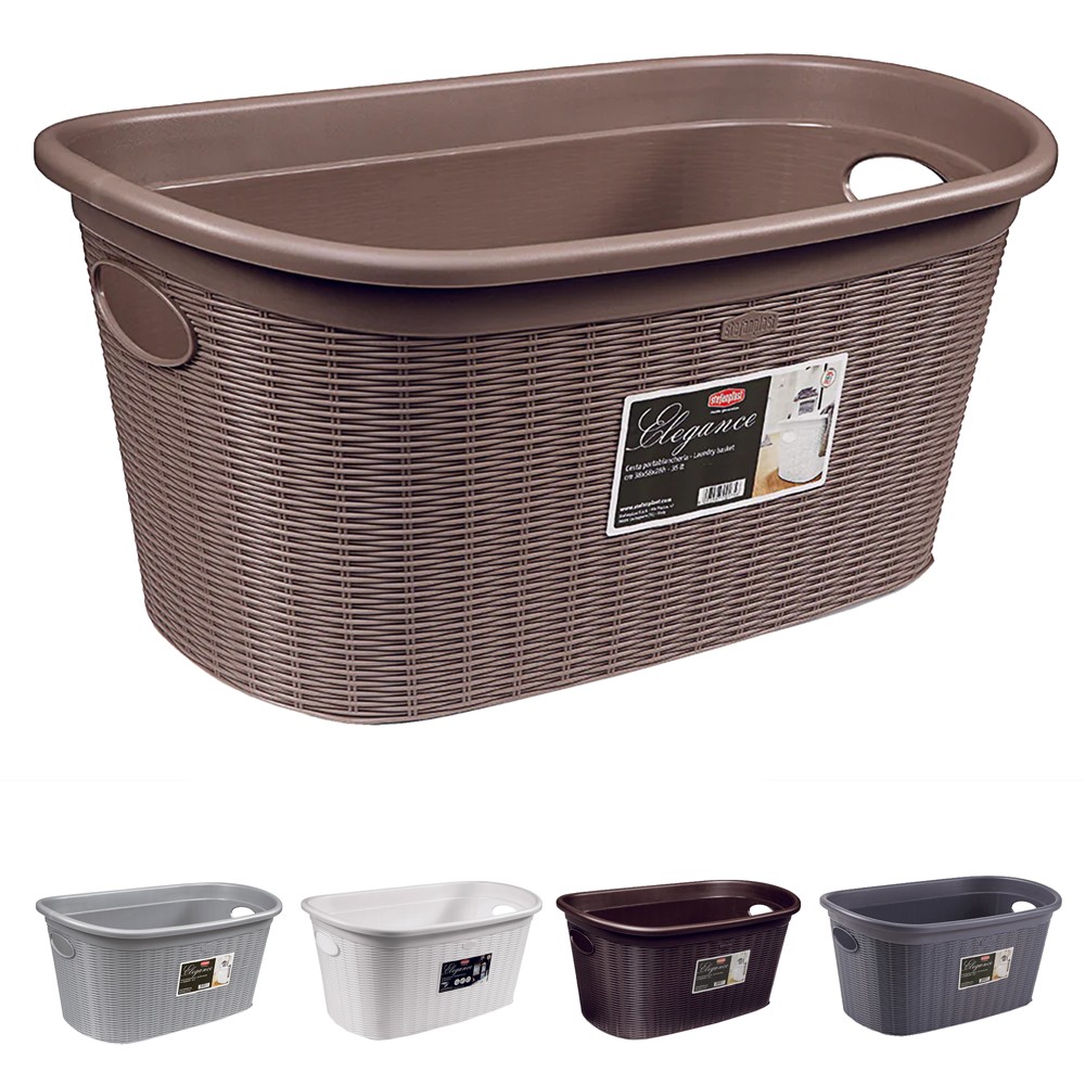 Ky kosh rrobash ELEGANCE, 35 lt është ideale për ruajtjen dhe organizimin e lavanderise në banjo, dhomë gjumi apo shërbimeve në një mënyrë elegant dhe praktike. Dizajn i ri inovativ, i frymëzuar nga nostalgjia e tekstileve te thurur. Koshat apo kutite te linjes STEFANPLAST qe te japin idene e ratan i thurur jo vetem qe jane nje element praktik per lavanderine tuaj apo ne vendet e tjera ku mund t'i perdorni por ato i japin dhe nje hijeshi tjeter ambjentit, shtepise suaj.