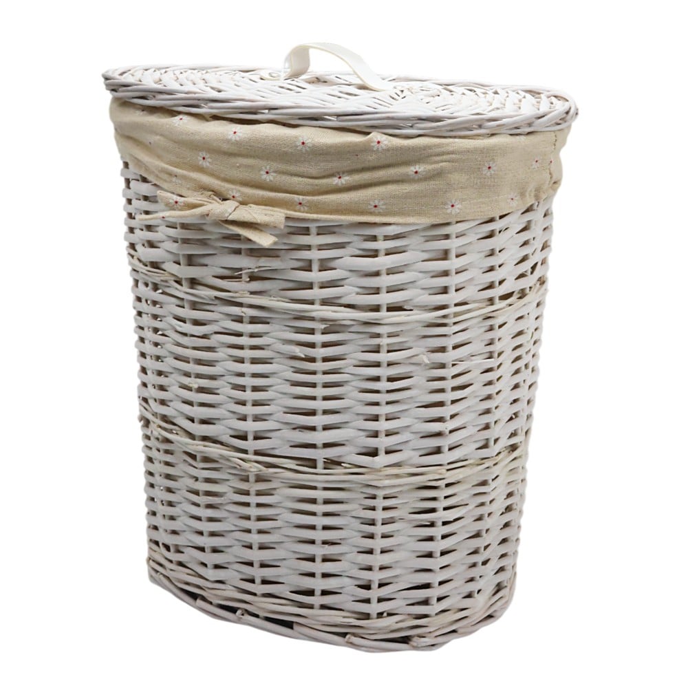 Kosh rrobash, Kankun S, Ovale, Kashtë, E bardhë, 34x24x39 cm