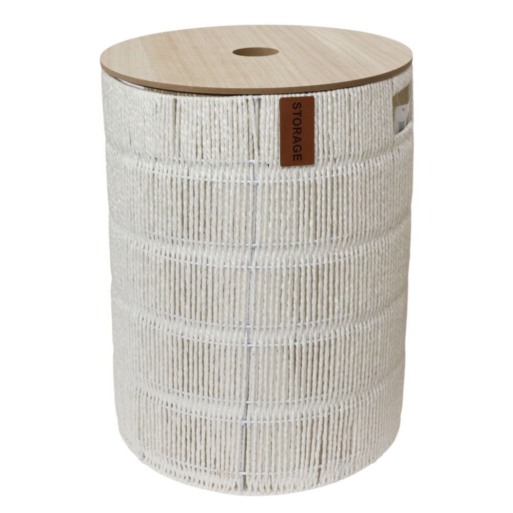 Kosh rrobash, material tekstili/druri, e bardhë, 40xH52 cm