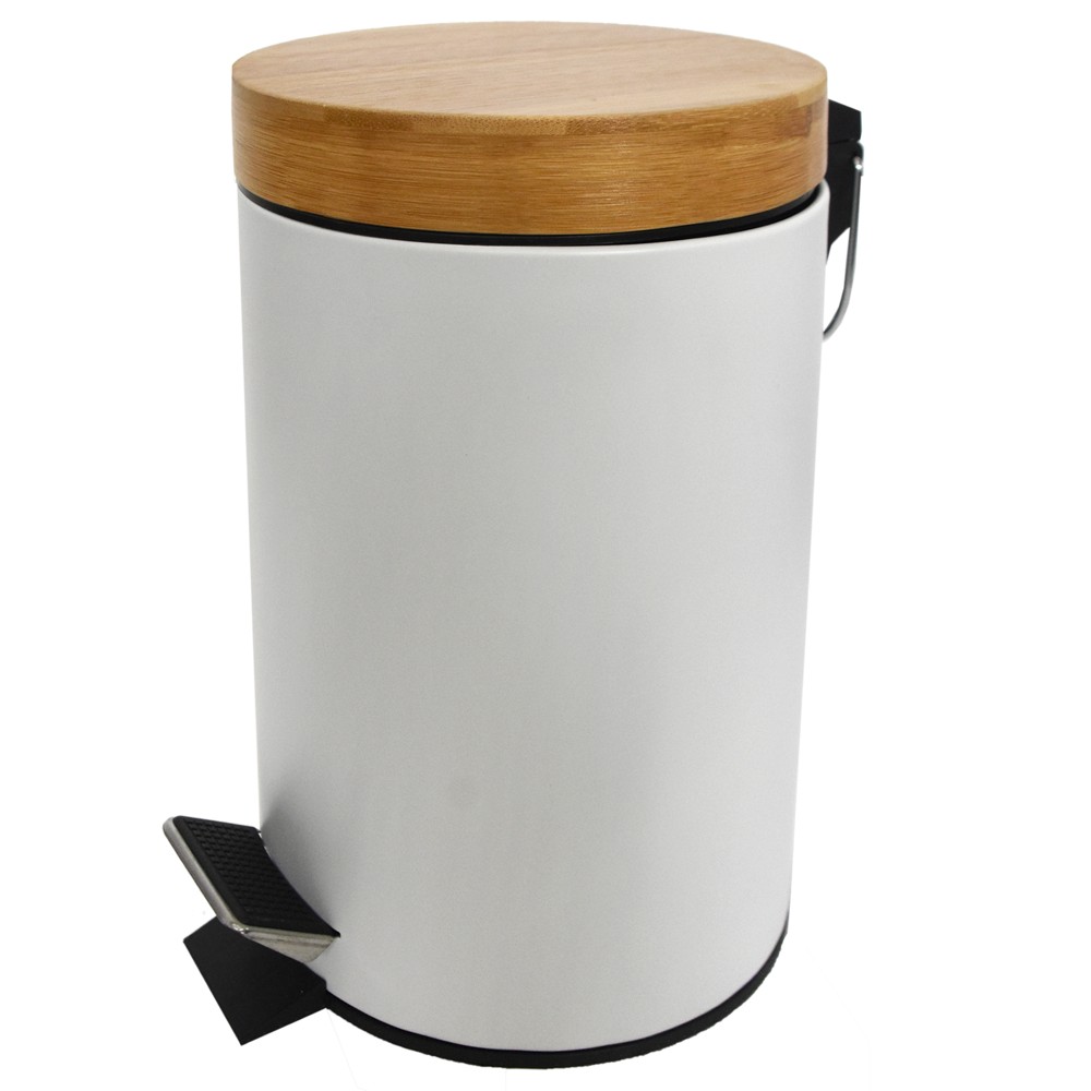 Po vlerësoni:Kosh tualeti, 3L, metal/bambu, e bardhë,16.8xH25cm