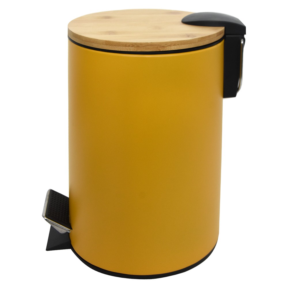 Po vlerësoni:Kosh tualeti, 3L, metal/bambu, e verdhë,16.8xH24cm