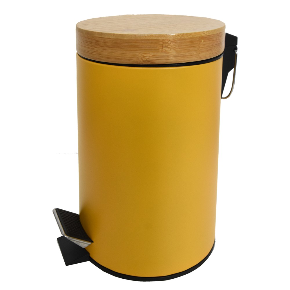Po vlerësoni:Kosh tualeti, 3L, metal/bambu, e verdhë,16.8xH25cm