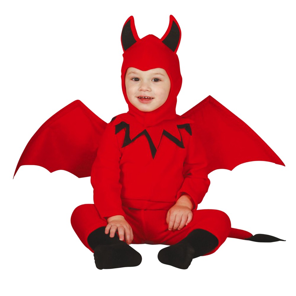 Kostum devil për fëmijë, prej materiali poliestre, në ngjyrë të kuqe. Materiali përbërës është i butë në prekje dhe nuk shkakton irritim në lëkurë. Ky produkt është i përshtatshëm për përdorim nga fëmijë të moshës 12-18 muajsh me gjatësi 82 cm deri në 88 cm .