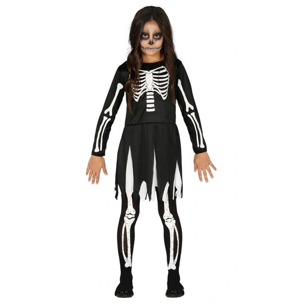 Kostum skeleti për fëmijë, prej materiali poliestre, në ngjyrë të zezë dhe të bardhë. Materiali përbërës është i butë në prekje dhe nuk shkakton irritim në lëkurë. Ky produkt është i përshtatshëm për përdorim nga fëmijë të moshës 10-12 vjeç, me gjatësi 146 deri në 152 cm. Kostumi përfshin bluzën dhe pantallonat.