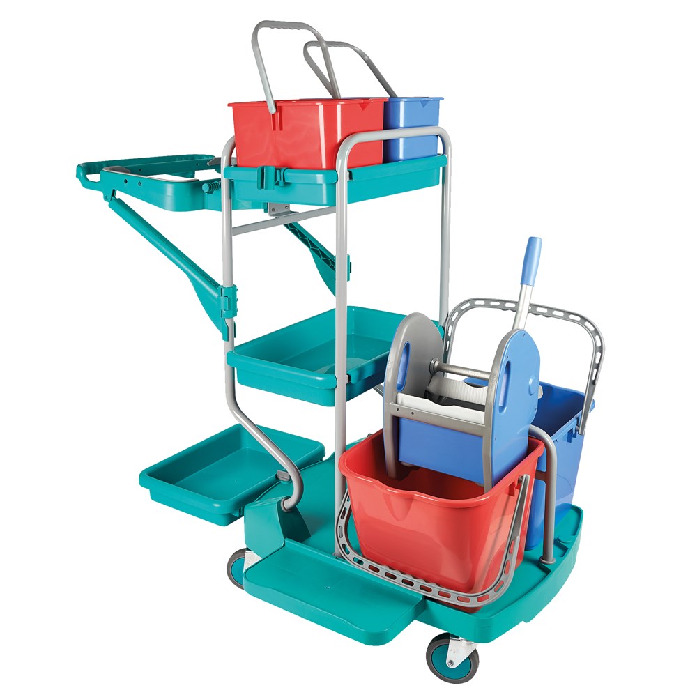 Kovë profesionale për pastrimin e hoteleve, vilave apo ambjenteve me sipërfaqe të madhe, e prodhuar nga brendi Italian, " Perfetto professional", i specializuar për artikujt H.O.R.E.C.A . Set i pastrimit përmban aksesorët e nevojshëm për një pastrim efikas. Seti i cili ka një peshe 19.5 kg e prodhuar nga bazament i qëndrueshëm i plastikës dhe me strukturë metalike me rezistencë të lartë ka 4 ndarje. E pajisur me 4 kova- 2x9 lt dhe 2 x15 lt, ndarja fundore mban 2 kovat të cilat përdoren për larje të dyshemesë, e pajisur dhe me shtrydhëse plastike me dorezë metalike (doreza e pajisur me gominë në pjesën fundore kundra rrëshqitjes ), 2 katet e tjera jane opsionale ku mund të vendosësh pecetat e pastrimit, larësit, sfungjerët apo cdo aksesor tjetër e domosdoshme për një pastrim sa me të mirë. Kati i sipërm përmban 2 kova të cilat dhe kto janë opsionale nga përdoruesi, mund të mbushen me ujë të pastër apo të vendosesh aksësorë të tjerë pastrimi. Në pjesën e transportuesit ndodhet dhe hapësira ku mund të vendosesh qesen e mbeturinave. Falë transportuesit dhe pajisjes me rrota levizja e saj është tepër e lehtë. Ngjyrat e setit janë rezistente deri në 90°C. E disponueshme në ngjyrë jeshile, me kova blu dhe të kuqe.