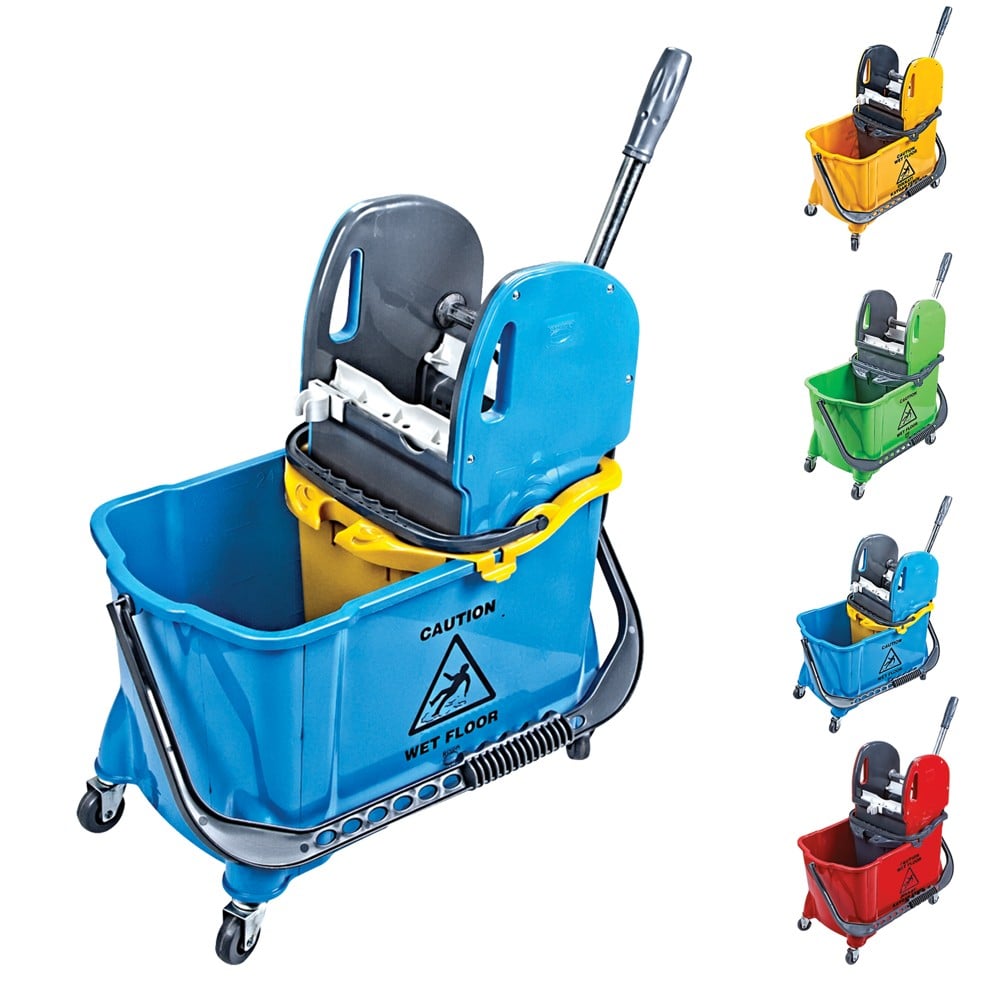 Kovë pastrimi, plastike, me rrota, 10+24 lt, 69x32x72 cm, blu dhe e verdhë, 1 copë