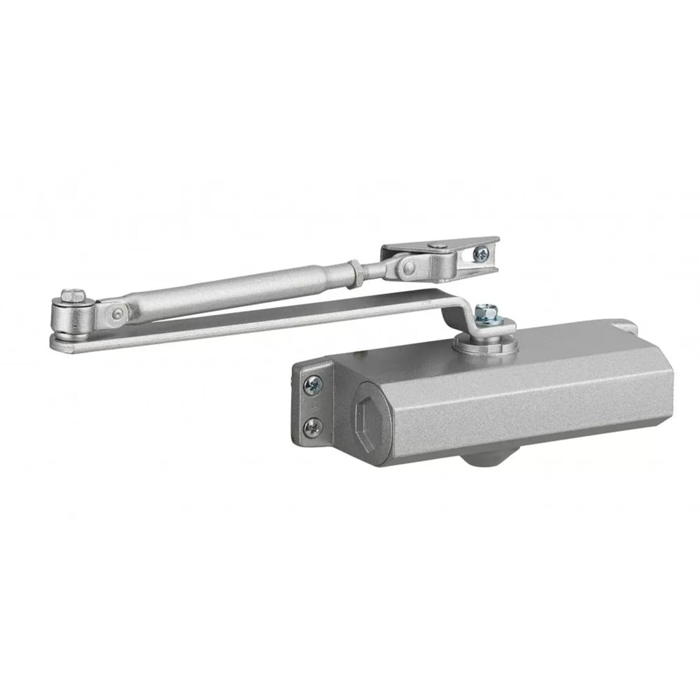 Hydraulic door closer. Can be mounted on the right or left. Adjustment of closing speed and final stop is done with a screw.