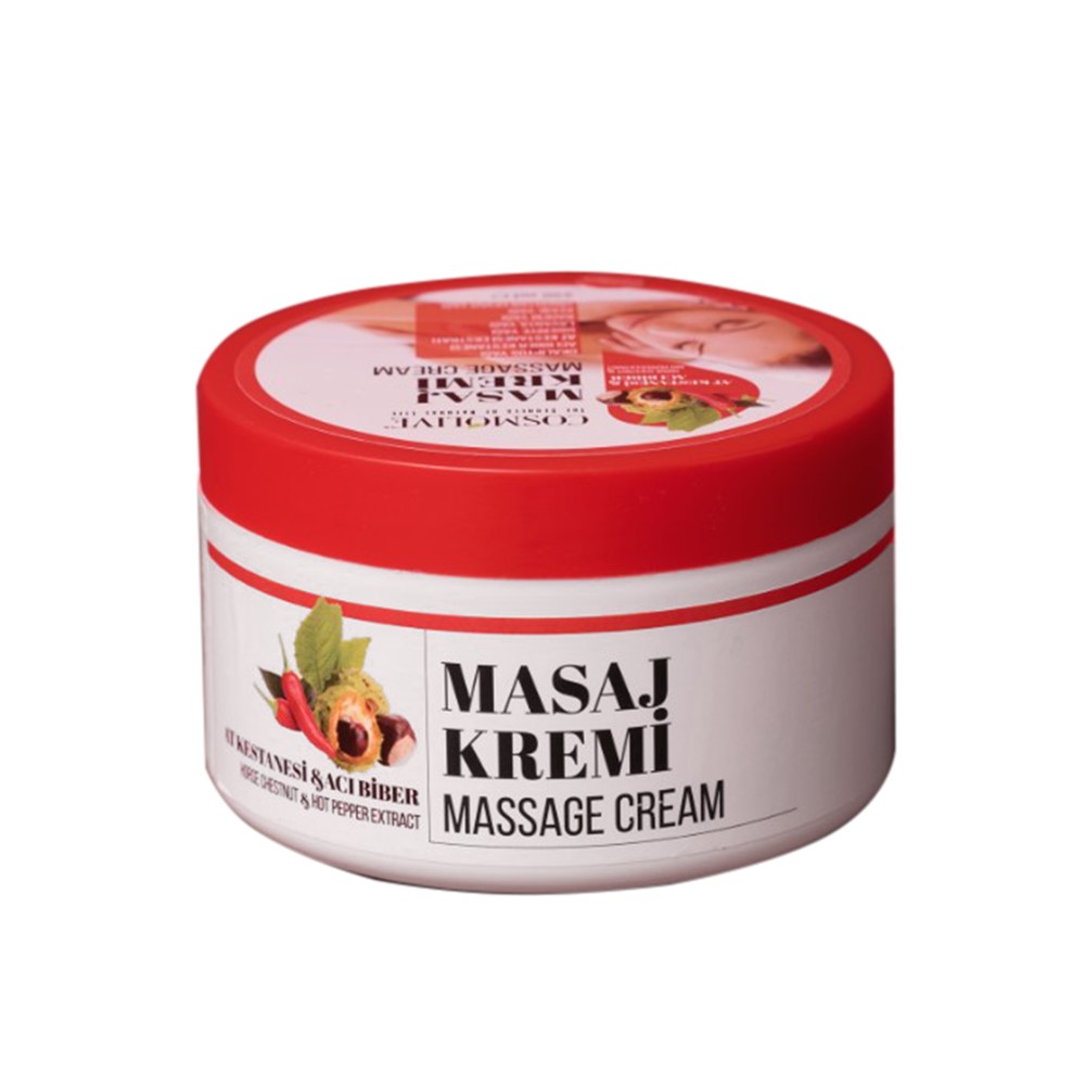 Krem masazhues për trupin, me ekstrakt gështenje dhe ekstrakt speci të kuq djegës. Përdoret për të masazhuar lëkurën, për të hequr papastërtitë dhe qelizat e vdekura të lëkurës, për të hequr celulitin dhe për të përmirësuar qarkullimin e gjakut. Ky produkt është i përshtatshëm për të gjitha llojet e lëkurës dhe ka efekt rigjenerues dhe tonifikues.