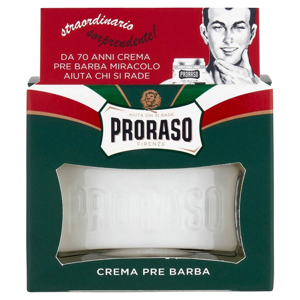 Proraso Pre-Save Cream Eucalyptus & Menthol përgatit lëkurën për rruajtje, duke e bere mjekren super të butë dhe më të trashë., ai siguron një bazë të lubrifikuar, duke përmirësuar lehtësinë në të cilën brisqet mund të rrëshqasin mbi lëkurë. Proraso Pre-Save Cream Eucalyptus & Menthol përdor një formulë tradicionale që është pa vajra dhe parabene për shëndetin më të mirë të lëkurës. Vaji eukalipt ofron një efekt tonifikues, duke pastruar lëkurën duke siguruar që ajo të mos thahet gjatë rruajtjes. Një prekje rigjallëruese mund t'i atribuohet mentolit, duke punuar në lidhje me mënyrën sesi baza e glicerinës redukton irritimin dhe ofron përvojën më të qetë të mundshme. Lagni fytyrën dhe aplikoni Proraso Pre-Save Cream Eucalyptus & Menthol, duke e masazhuar me kujdes në lëkurë me lëvizje rrethore. Më pas aplikoni sapun ose shkumë rroje.