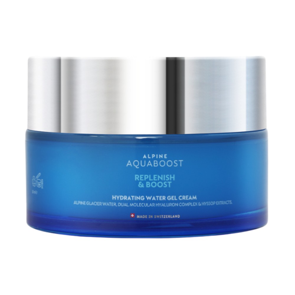 Kremi xhel hidratues me ujë Alpine Aquaboost me hialuronat natriumi dhe ekstrakt hisopi zviceran është krijuar për të rikthyer shpejt lagështinë, për të hidratuar intensivisht dhe për të forcuar qëndrueshmërinë e barrierës së lagështisë së lëkurës suaj. Kompleksi i dyfishtë molekular i hialuronit për të rritur dhe fiksuar hidratimin e thellë dhe afatgjatë. Jo i yndyrshëm, përthithet shpejt. Të gjitha llojet e lëkurës, duke përfshirë lëkurat e ndjeshme shumë të thata.