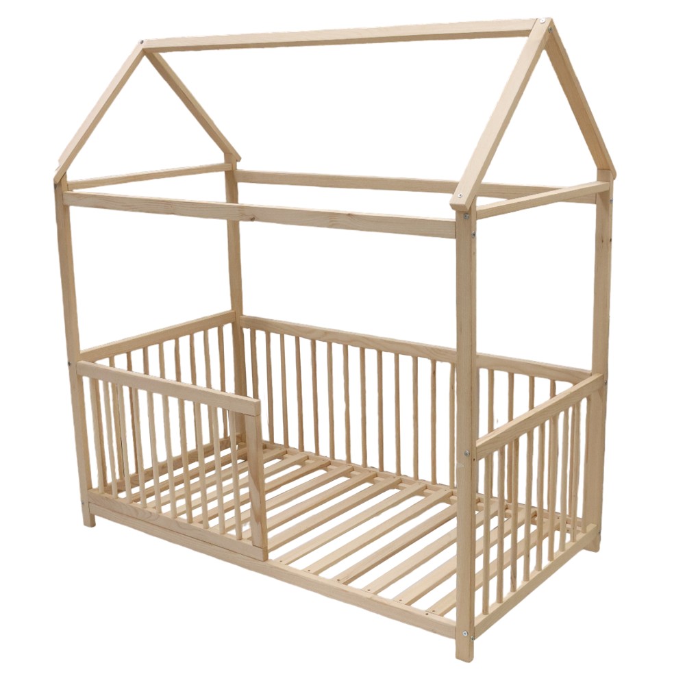 Krevat per femije prej material druri. Krevati ka nje dizajn ne formen e nje shtepie dhe vjen ne ngjyre natyrale. Ka nje permase strukture prej 145x150x79 cm, dhe nje permase ne zonen e dyshekut prej 140x70 cm. Mund te dizenjohet me veshjet e krevatit me kod 7810728, 7810729, dhe tendat me kod 7810730, 7810731.