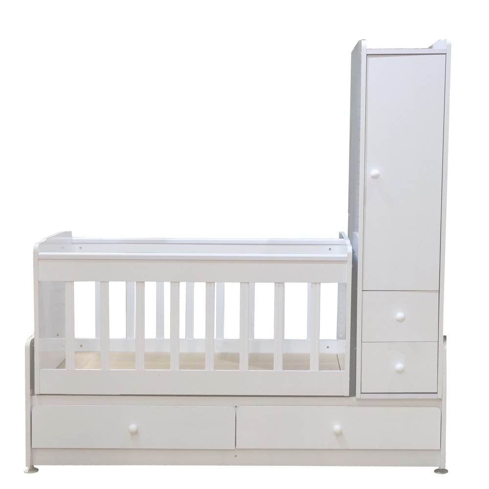 Krevati për femije I krijuar nga material MDF, në përmasat 165x65x180 cm. Ai ka sirtarë ku mund të organizoni veshjet e fëmijës si dhe një dollap anësor. Krevati është vendi ku fëmijet e porsalindur kalojnë shumicën e kohës, për këtë arsye duhet të studiohet e të ndertohet duke mbajtur parasysh karakteristikat dhe nevojat e femijës në vetvete. Ky krevat eshte teper rezistent, dhe është antialergjik për fëmijët.
