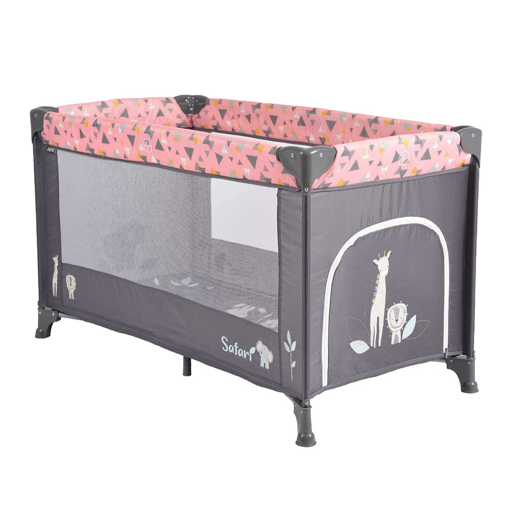 Krevat portativ për fëmijë, Cangaroo, Safari, 125x65 cm, rozë dhe gri, 1 copë