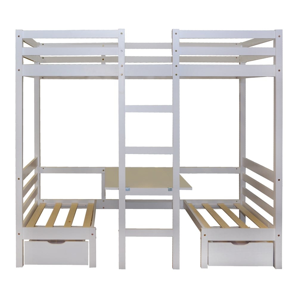 Prapa çdo ëndërr të bukur është një shtrat i mirë dhe nëse ende kërkon një shtrat ideal për dhomën tuaj të vogël, këtë krevat e gjeni këtu. E punuar nga druri i pishës, kjo pjesë tregon një dizajn të hapur, me një shkallë që çon deri në krevatin në katin e dytë ndërsa një tavolinë e përfshirë zenë hapësirën poshtë.